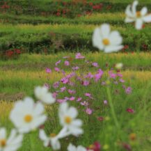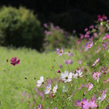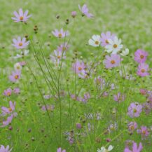 コスモスは、秋を代表する花として広く親しまれ、その優美な姿が秋風に揺れる光景は多くの人々を魅了します。ピンクや白、赤、黄色など多彩な色の花が咲き誇り、広い花畑を鮮やかに彩ります。特に9月から10月にかけて見頃を迎え、青空とのコントラストが美しく、写真撮影や散策に最適な季節です。秋の穏やかな陽射しの中で揺れるコスモスは、柔らかな雰囲気を感じさせ、どこか懐かしさと穏やかさを与えてくれます。
