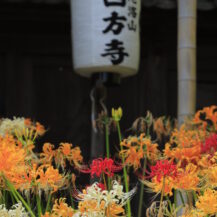 横浜市港北区にある西方寺は、秋になると境内が一面の彼岸花に包まれる隠れた名所です。観光地のような喧騒がなく、静かに咲き誇る赤い、オレンジ、白の彼岸花を心ゆくまで堪能できるのが魅力。山門から本堂へ続く参道の両脇を彩る彼岸花はまるでカラフルな絨毯のようで、訪れる人々を穏やかに迎えてくれます。