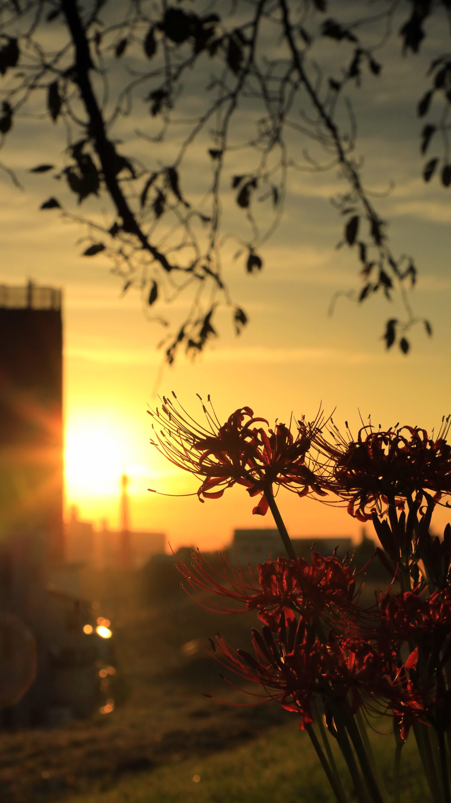 荒川土手|逆光の朝日で浮かび上がる彼岸花のシルエットの表現