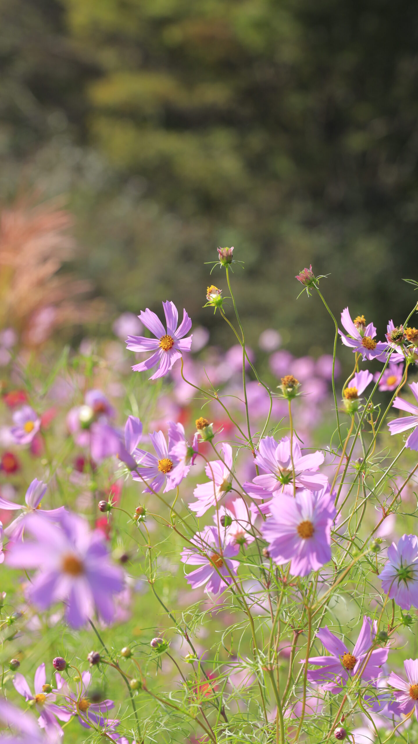 この写真は、真岡鉄道の多田羅駅付近で、綺麗に咲いたコスモスが風に揺れ、透き通るように光を受ける瞬間を収めたものです。